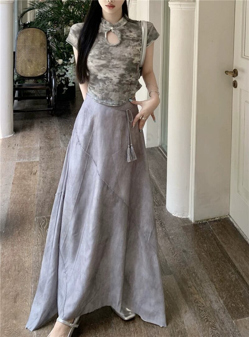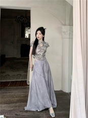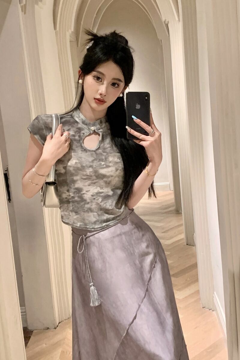 国民風の新しい中国のファッションスーツの女性のスリム半袖トップハイウエストハーフレングススカート夏の気質ツーピーススーツ ハイウェスト サマー 夏物 nana71738678039 | modepoisson