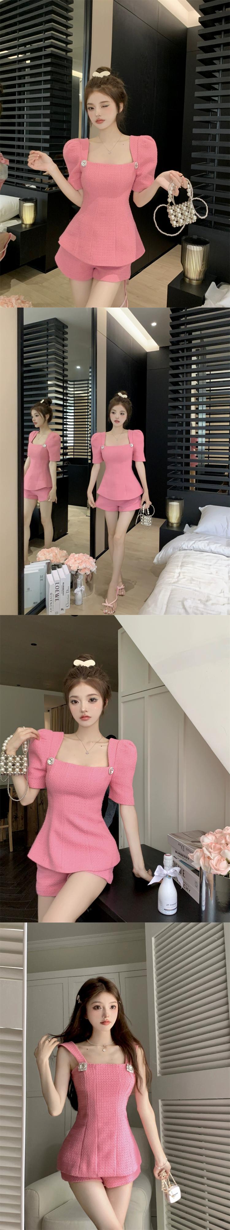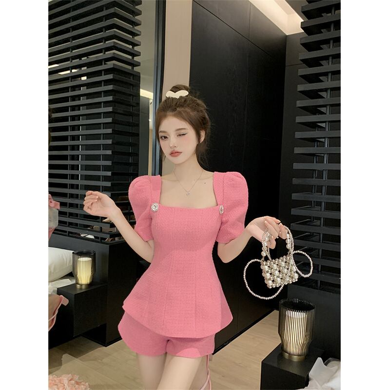 セレブ気質スーツスカート Xiaoxiangfeng ウエスト半袖トップハイウエストショートパンツ女性の夏のファッションツーピーススーツ ハイウェスト サマー 夏物 ショーツ ブルマー nana52515908700 | modepoisson
