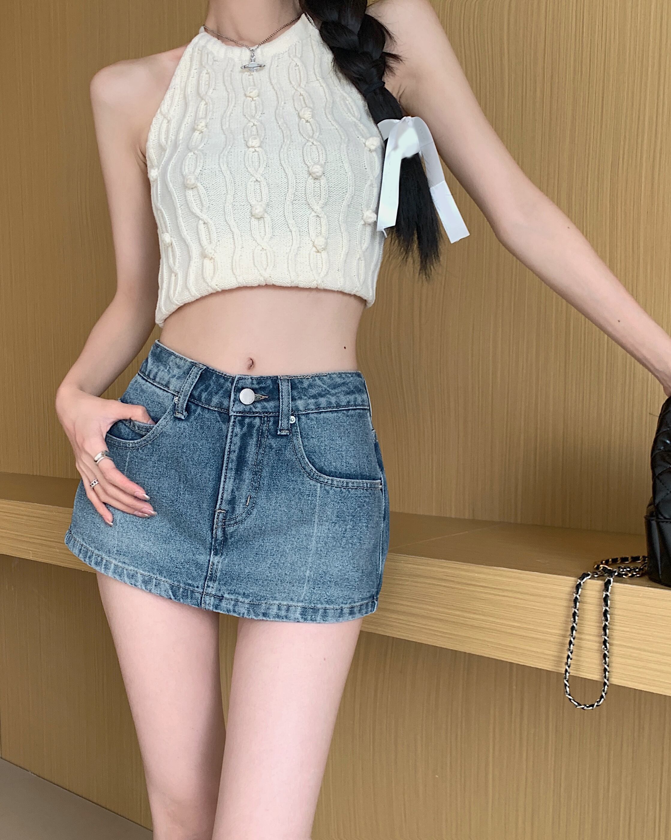 レトロデニムスカート女性の夏の 2023 新しい小さなスリムスカートパンツハイウエストバッグヒップショートスカート ハイウェスト サマー 夏物 nana52305316332 | modepoisson