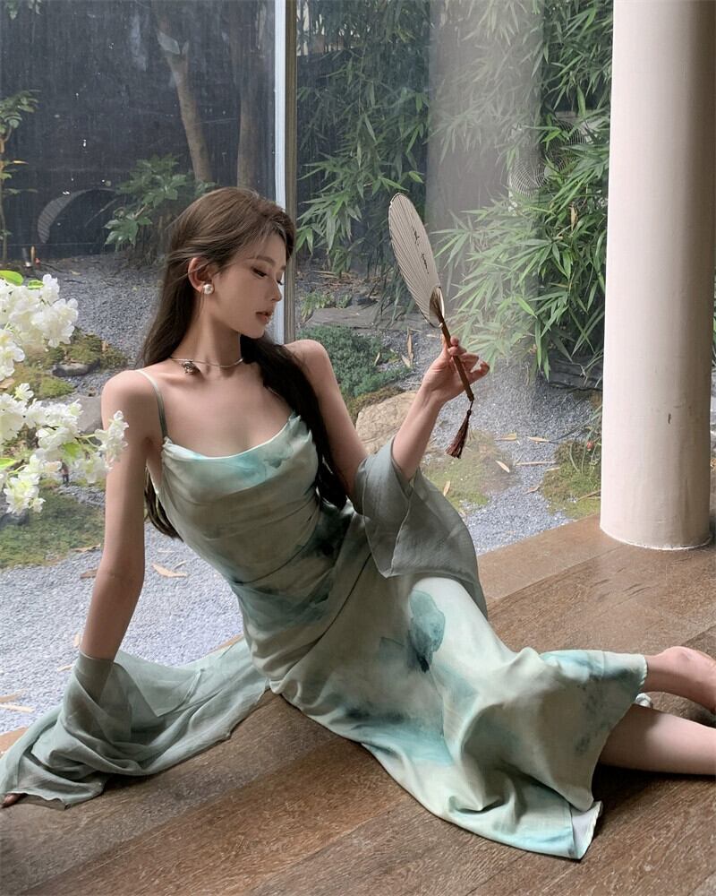 中国の気質サスペンダードレスカーディガン夏の優しい風緑のスカートスーツ女性のファッションアインスタイルファッショナブルな サマー 夏物 グリーン nana6486367022 | modepoisson