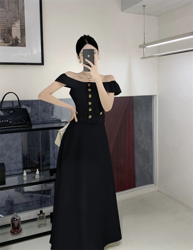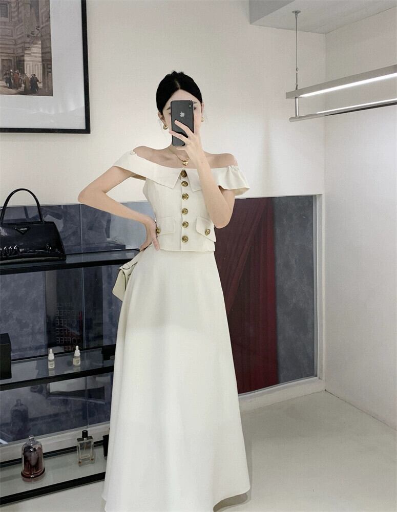 フレンチスーツ スカート 女性らしさ ワンショルダー トップス ハイウエストスカート ロングスカート 夏 ファッション 2点セット フライド ストリート ハイウェスト サマー 夏物 nana19468927215 | modepoisson