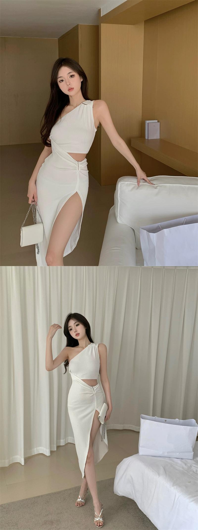 セクシーな白いドレスの女性の夏のハイウエストスリットデザインセンスニッチロングスカート純粋な欲望ノースリーブスカート ハイウェスト ホワイト サマー 夏物 ピュア nana46190545108 | modepoisson