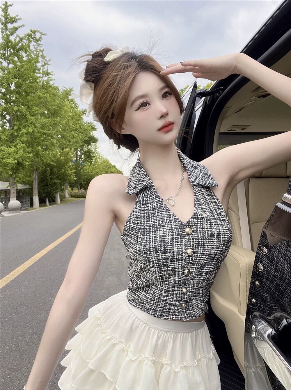 小さな香りの風甘いぶら下がりネックキャミソール女性の夏のストラップ自己修養インナーウェア薄型オールマッチノースリーブトップアウターウェア 大人ガーリー スウィート キュート カジュアル サマー 夏物 nana20982132017 | modepoisson