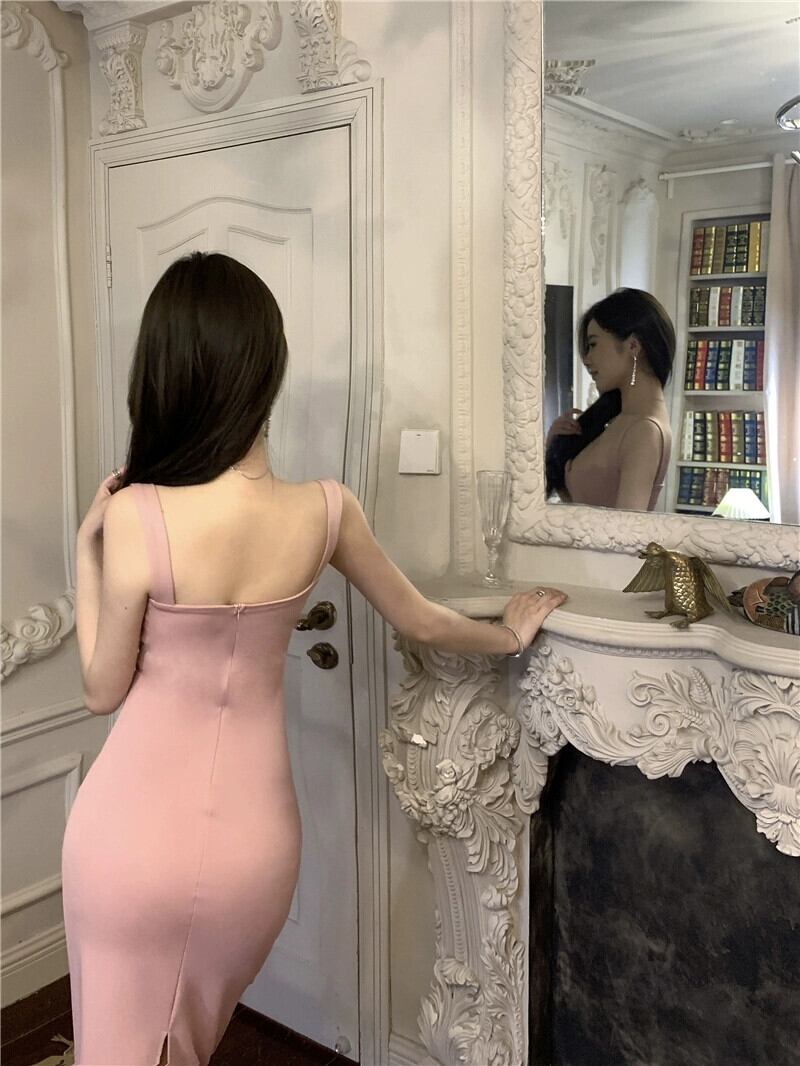 フレンチ甘辛スタイルスリムサスペンダードレス夏スリムセクシーなスリットロングスカート女性の黒の気質スカート ブラック 大人ガーリー スウィート キュート カジュアル サマー 夏物 nana58613654572 | modepoisson