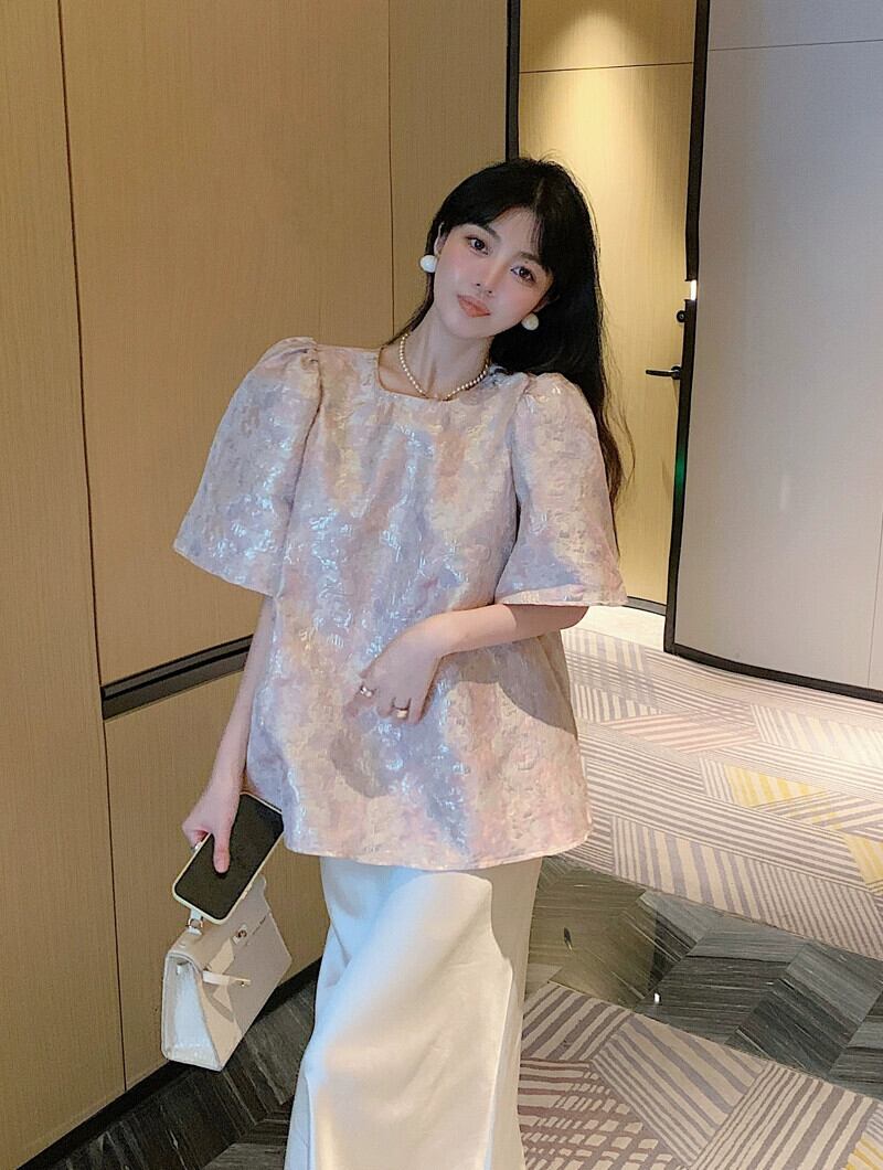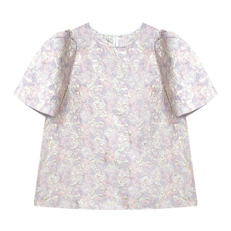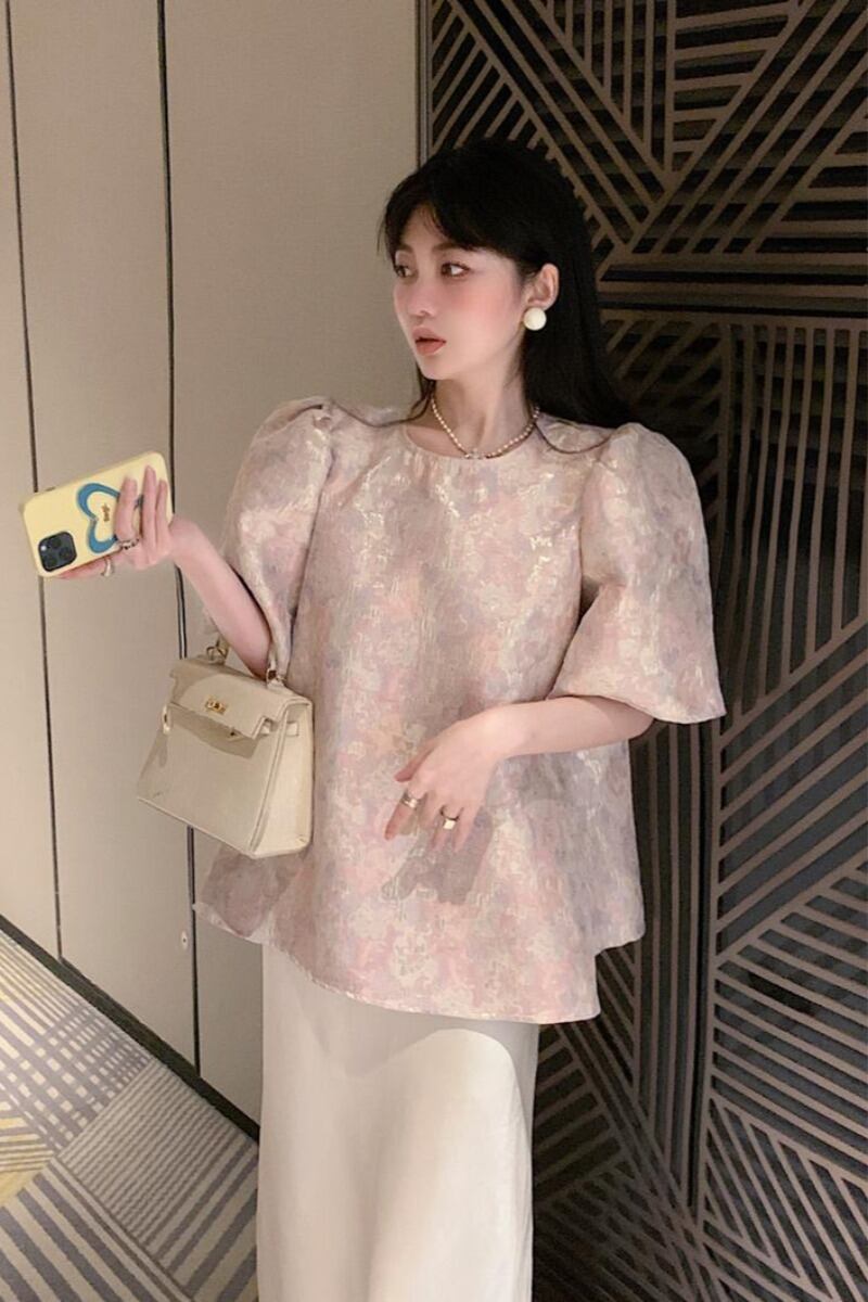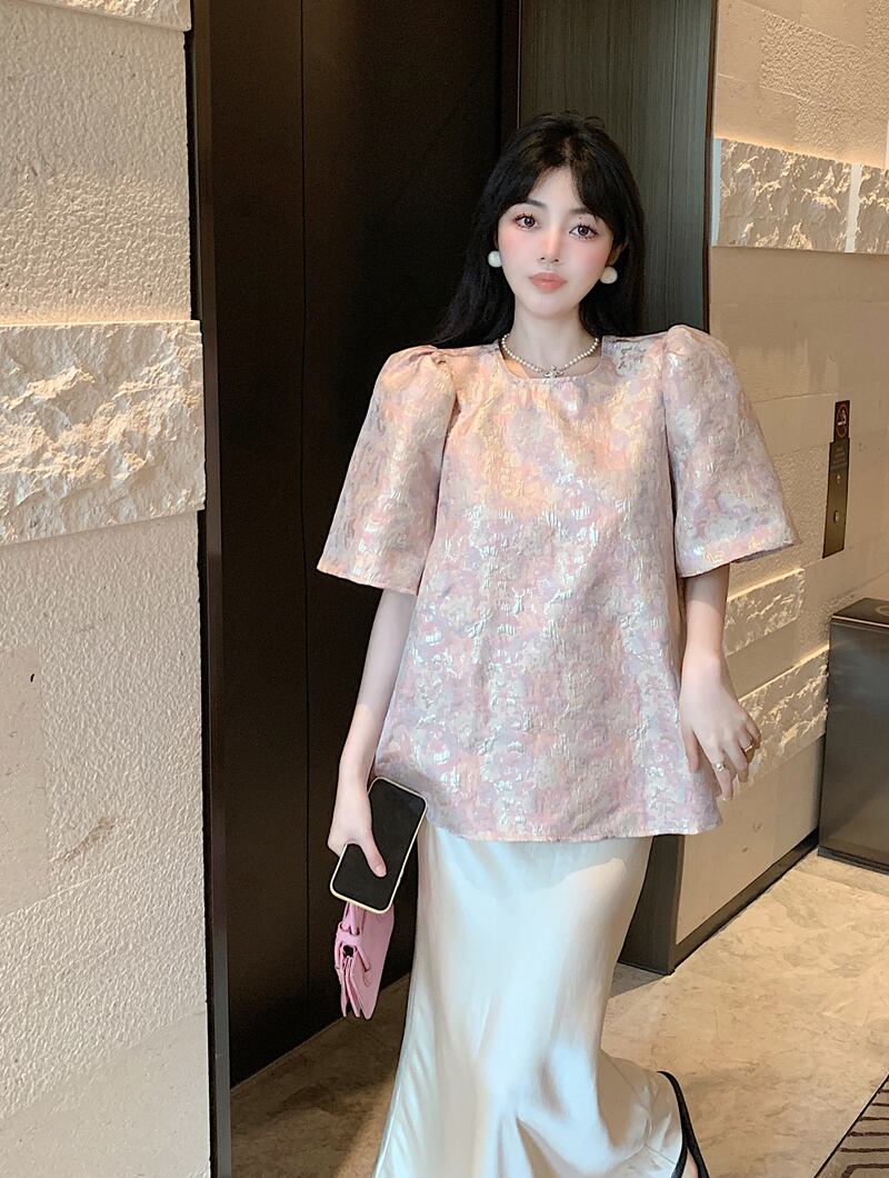 フレンチパフスリーブシフォンシャツレディース夏ゆったり薄手ドールシャツラウンドネック年齢軽減トップス西洋風甘い 大人ガーリー スウィート キュート カジュアル サマー 夏物 Oネック nana61129115201 | modepoisson