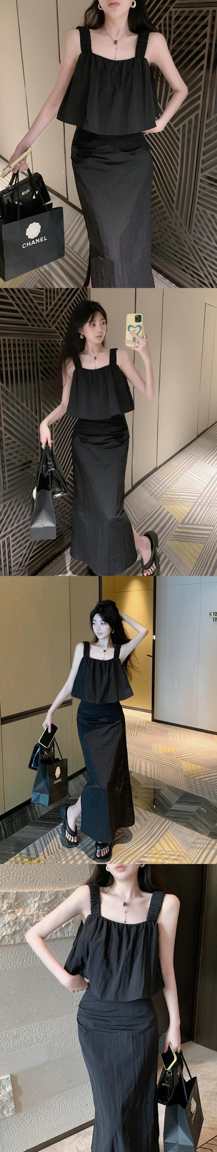 フレンチスイート スパイスガール スーツスカート 夏用 キャミソール ウエストスリムスカート ロングスカート 2点セット 大人ガーリー スウィート キュート カジュアル サマー 夏物 nana39510726312 | modepoisson