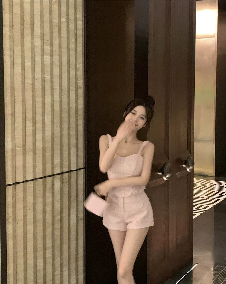 ピンクの小さな香りファッションスーツパンツ気質セレブ小さなベストハイウエストショーツ 2 点セット婦人服夏 ハイウェスト サマー 夏物 ブルマー nana18299303364 | modepoisson