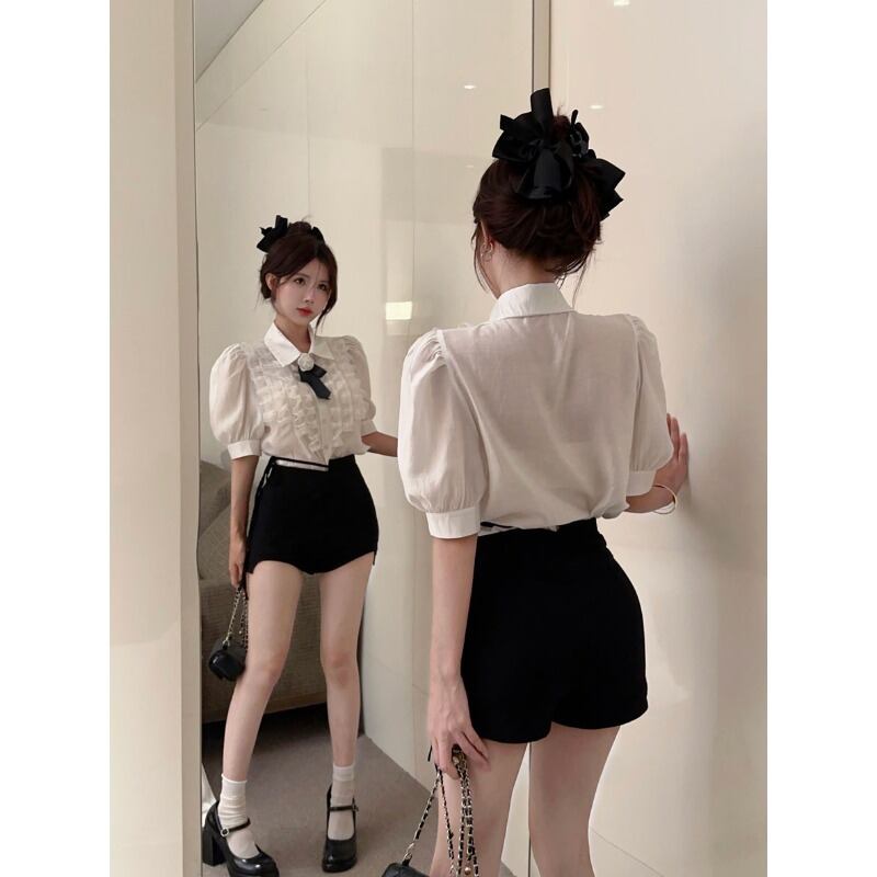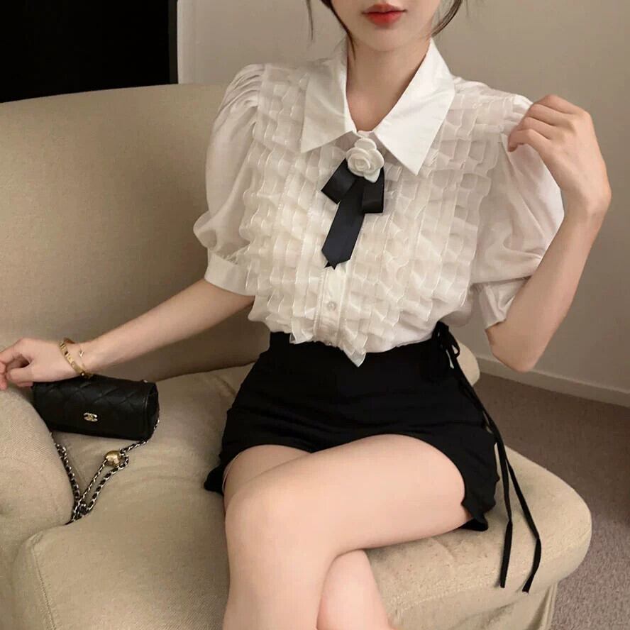 フレンチスイートパフスリーブシャツレディース夏のデザインセンスニッチシック半袖シャツベイビースリムトップス 大人ガーリー スウィート キュート カジュアル サマー 夏物 nana35582070027 | modepoisson