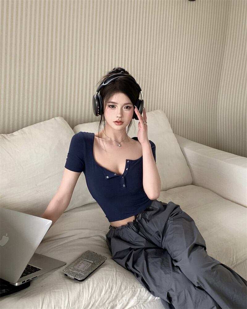 アメリカのタイトな半袖 Tシャツ婦人服 2023 新しい夏のハイウエストスリミング甘くてスパイシーなニッチショートトップ ハイウェスト 大人ガーリー スウィート キュート カジュアル サマー 夏物 nana29109878749 | modepoisson