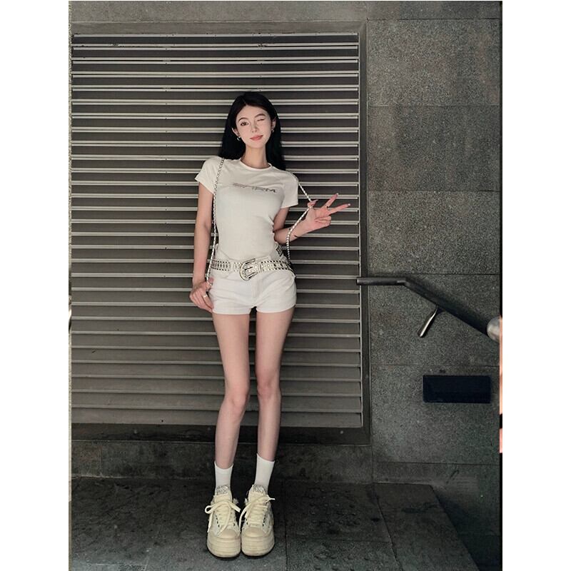ホットトップハイウエストスリムショーツ 2023 新ファッションスーツ夏小男揚げストリートツーピース婦人服 ハイウェスト サマー 夏物 ブルマー nana59654935706 | modepoisson
