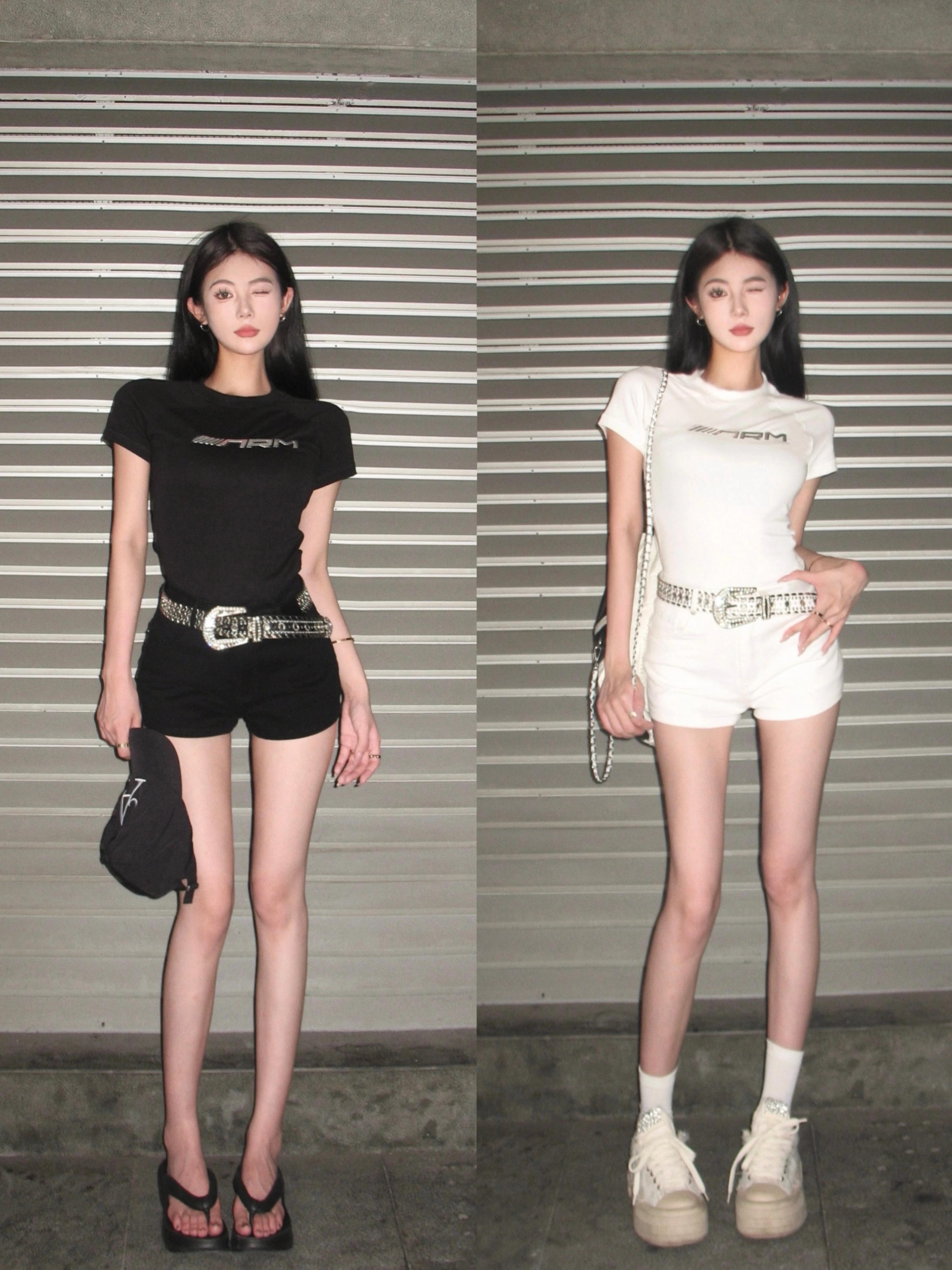 色:ブラックトップ,ホワイトトップ,黒のショートパンツ,ホワイトショーツ,黒帯,白いベルト