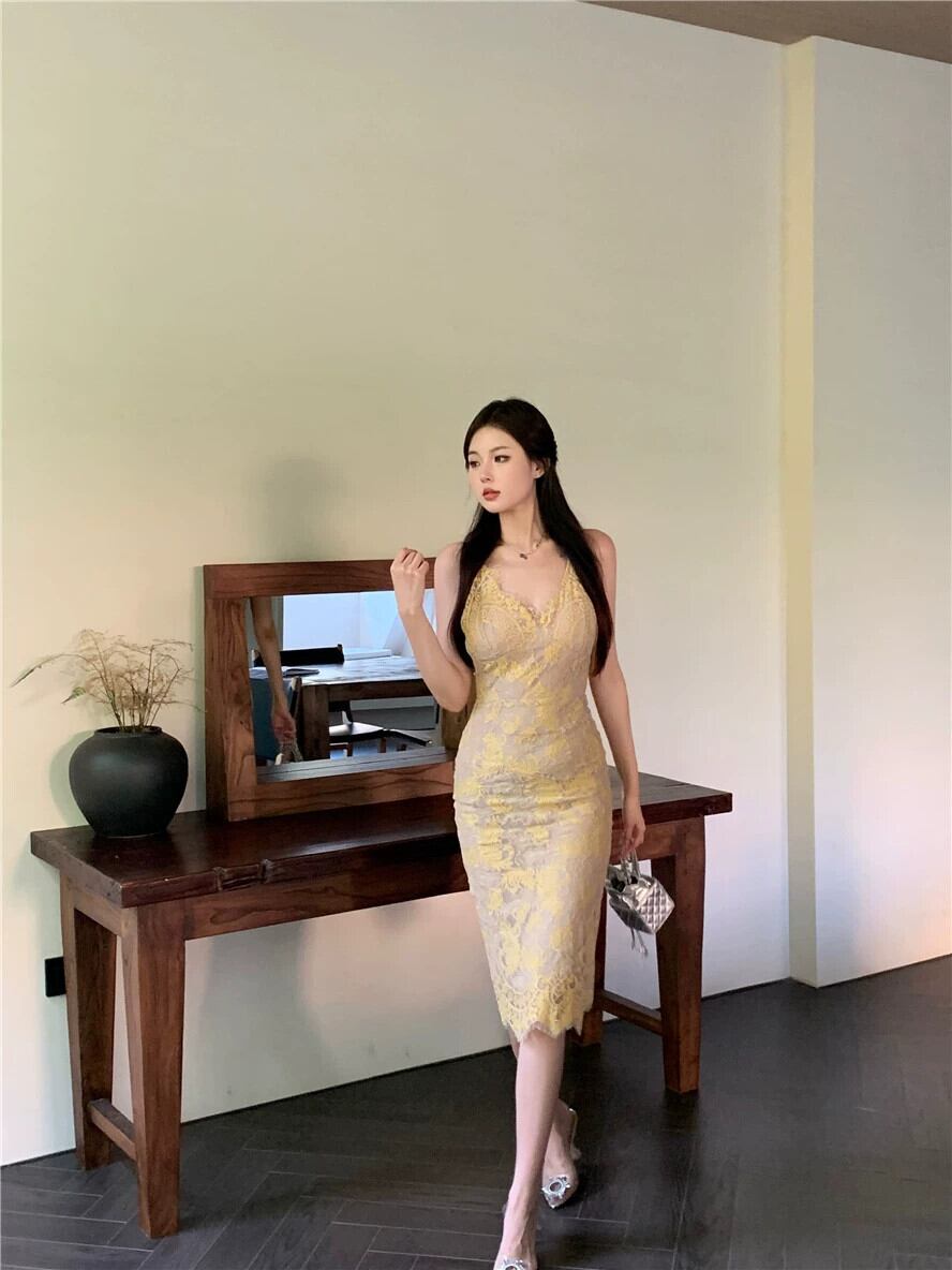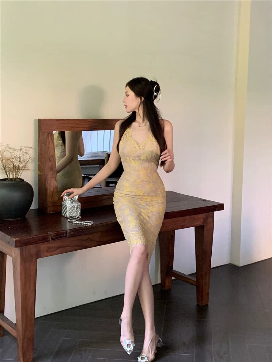 フレンチ v ネックレースサスペンダードレス女性の夏のミッドレングススカート 2023 新しいセクシーなタイトフィットヒップスカート サマー 夏物 Vネック nana60430561271 | modepoisson