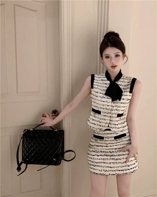 色:黒と白の色のコントラストのスカート,黒と白のコントラストトップ