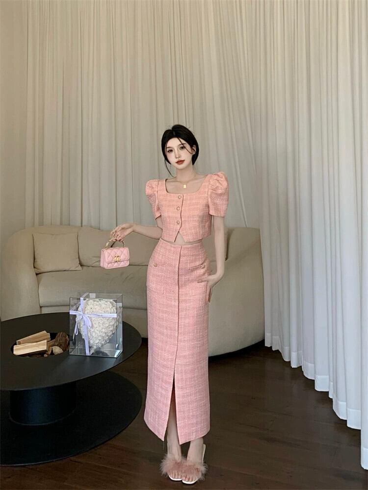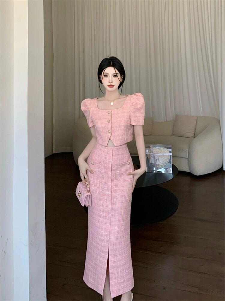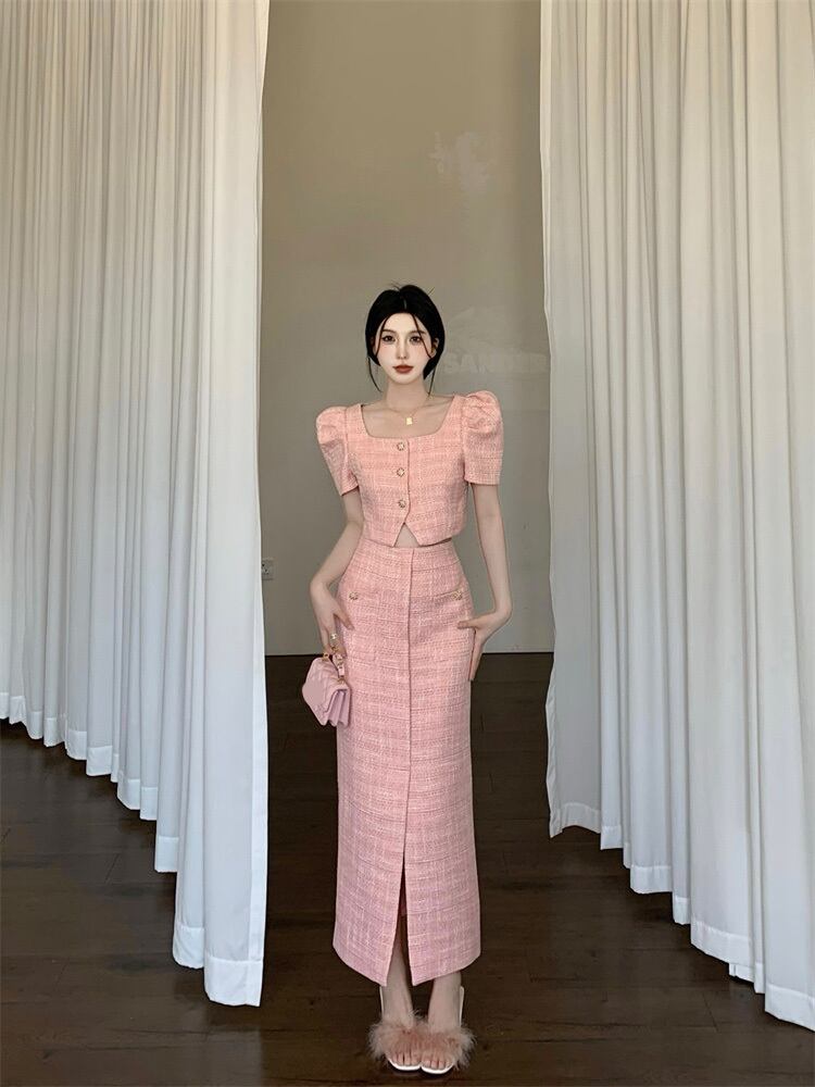 小さな香りのスタイルの女性の気質スーツの女性のスーツジャケットハイウエストバッグヒップスリットロングスカートツーピース夏 ハイウェスト サマー 夏物 nana91257802452 | modepoisson