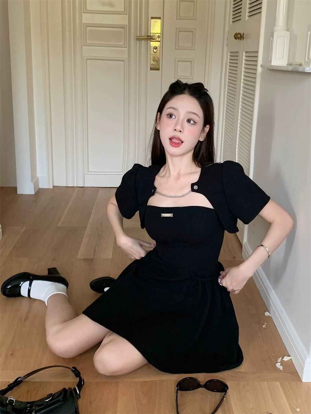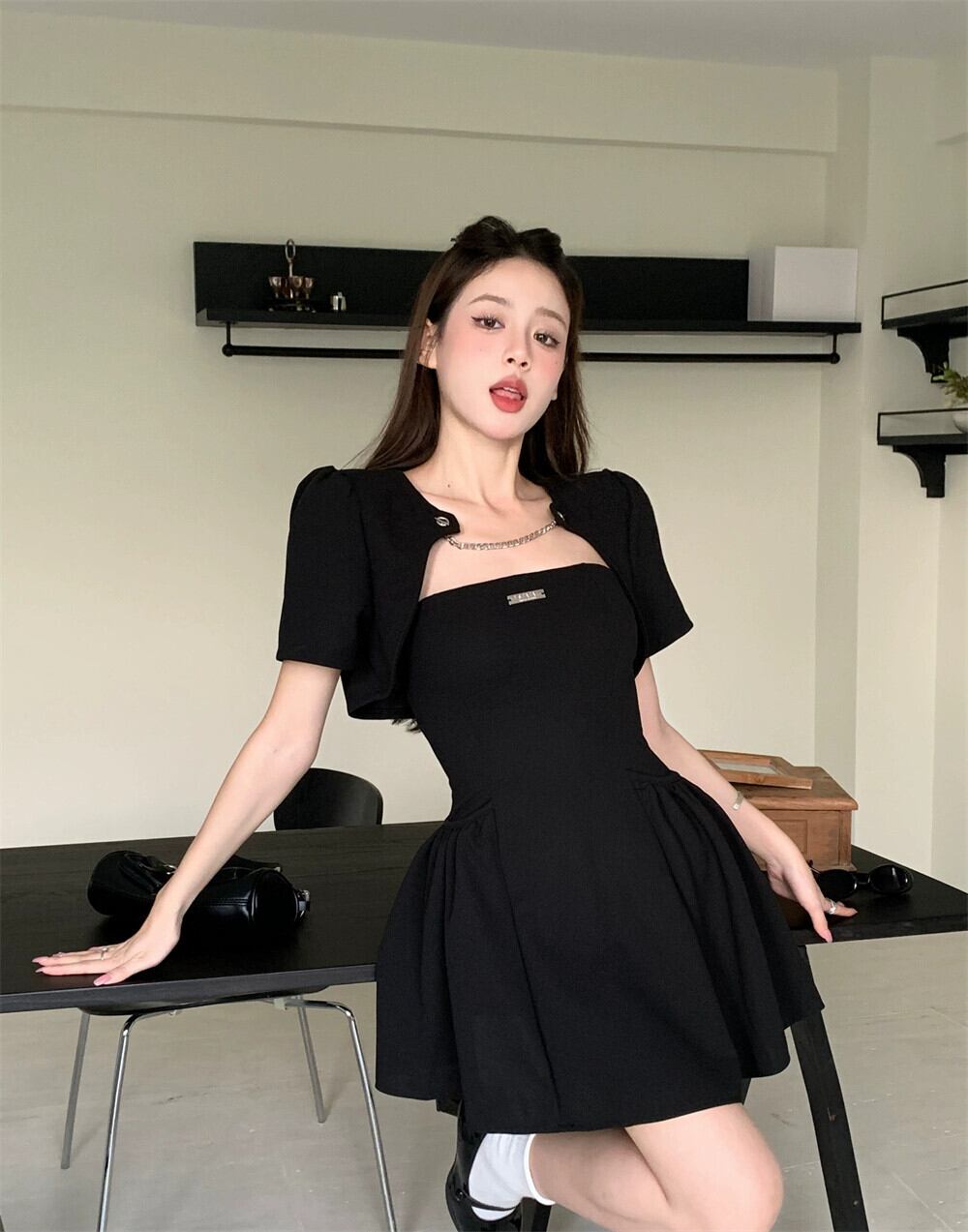 色:黒チョッキ,ブラックチューブトップスカート