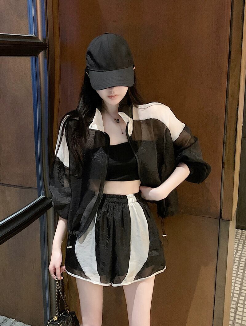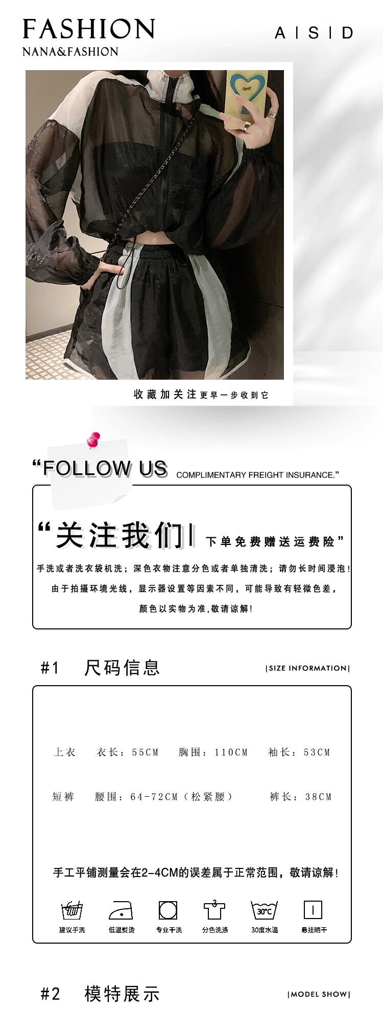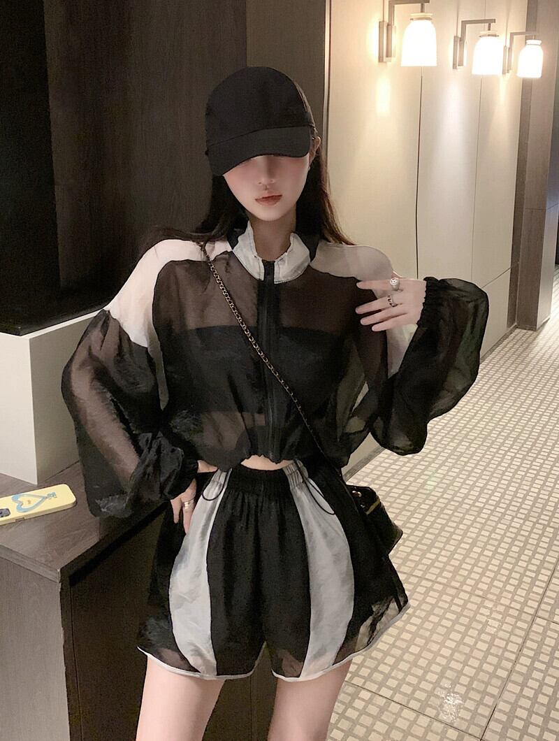 ルーズ長袖日焼け止めスーツ女性の夏薄手のコートハイウエストワイドレッグショーツ揚げストリートファッション 2 点セット ハイウェスト ロング サマー 夏物 ブルマー ワイドパンツ nana68399786751 | modepoisson