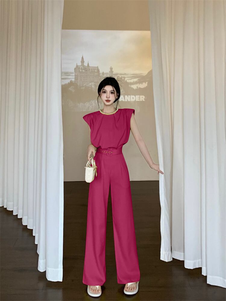 セレブ女性の高級スーツルーズノースリーブトップハイウエストワイドレッグパンツファッション気質ツーピースセット女性夏 ハイウェスト サマー 夏物 nana37961059639 | modepoisson