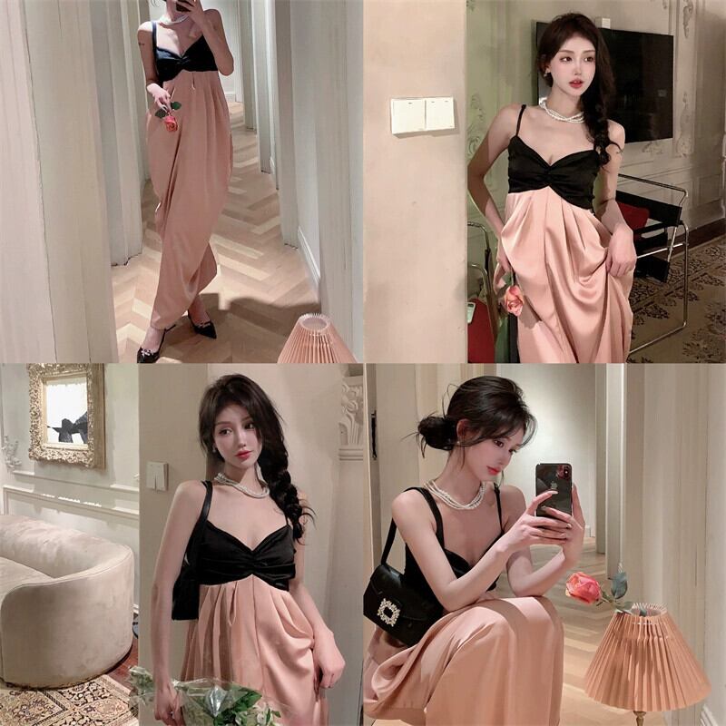 フランスの気質ティーブレイクドレスハイエンドカラーコントラストチューブトップサスペンダースカートデザイン感覚芽ロングスカート女性の夏 サマー 夏物 nana43559163627 | modepoisson