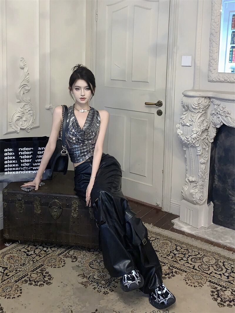 ピュアディザイア 吊りネックキャミソール レディース 夏 デザインセンス ニッチ ノースリーブ スリムフィット ショートトップ アウター サマー 夏物 nana331794801 | modepoisson