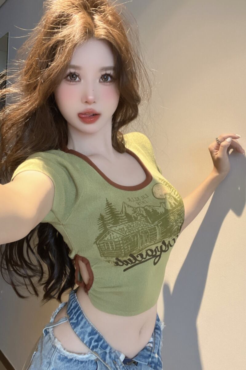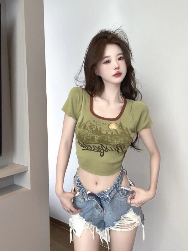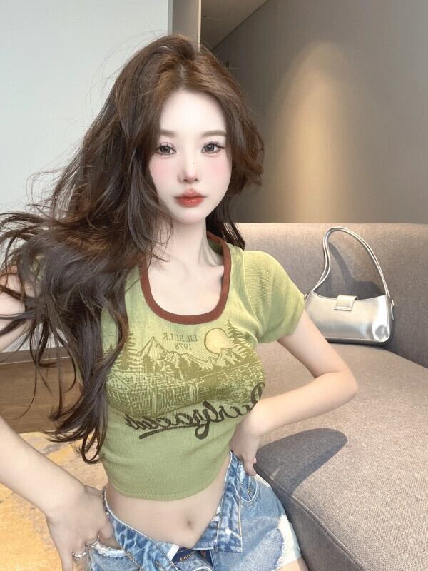 アメリカンプリント半袖Tシャツレディース2023年夏新デザインセンスニッチ甘辛ショートニットトップ 大人ガーリー スウィート キュート カジュアル サマー 夏物 nana81116943316 | modepoisson