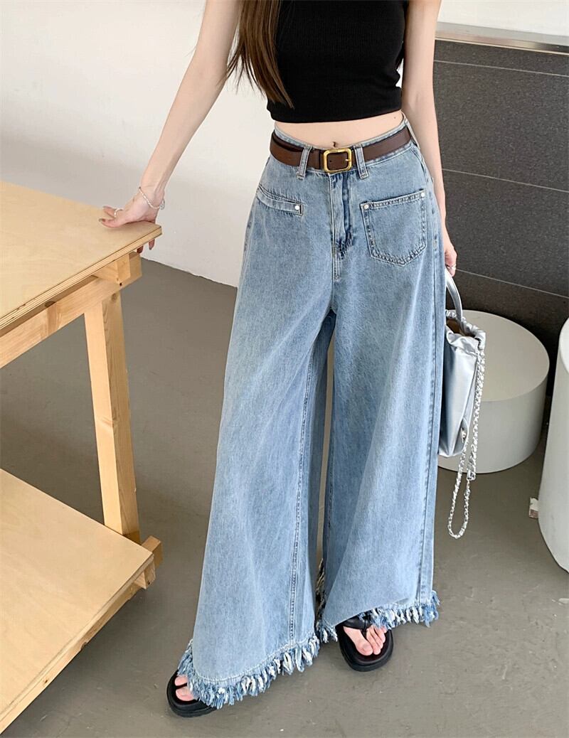 アメリカンレトロオールドフレアジーンズレディース夏ハイウエストルーズスリムワイドレッグパンツ生端モップパンツ ハイウェスト レッド サマー 夏物 ワイドパンツ nana61776728021 | modepoisson