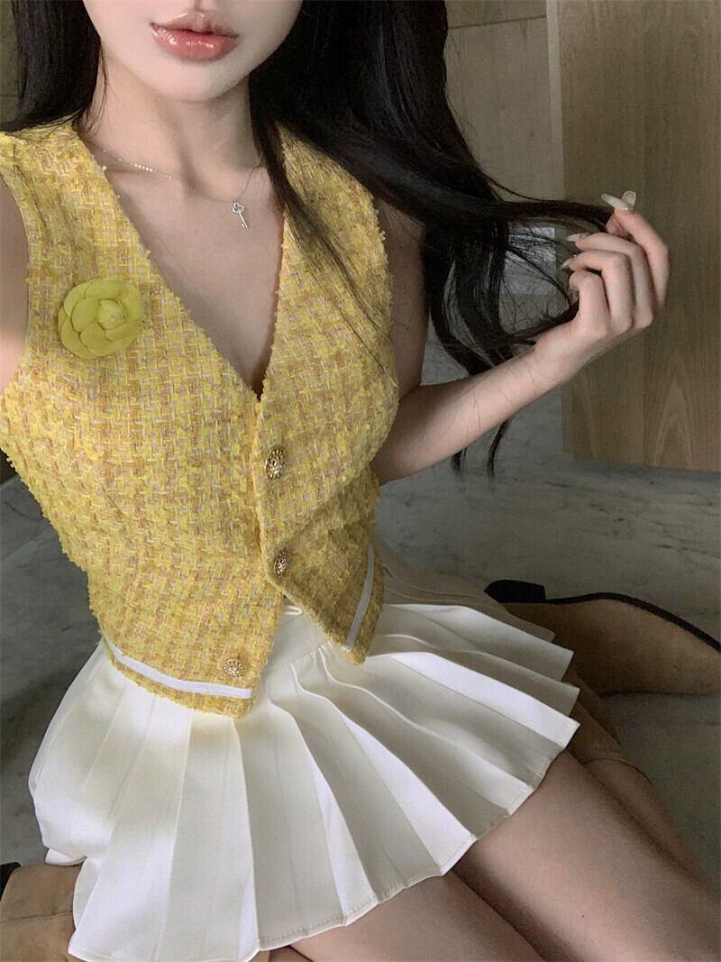 色:白いスカート,黄色のベスト