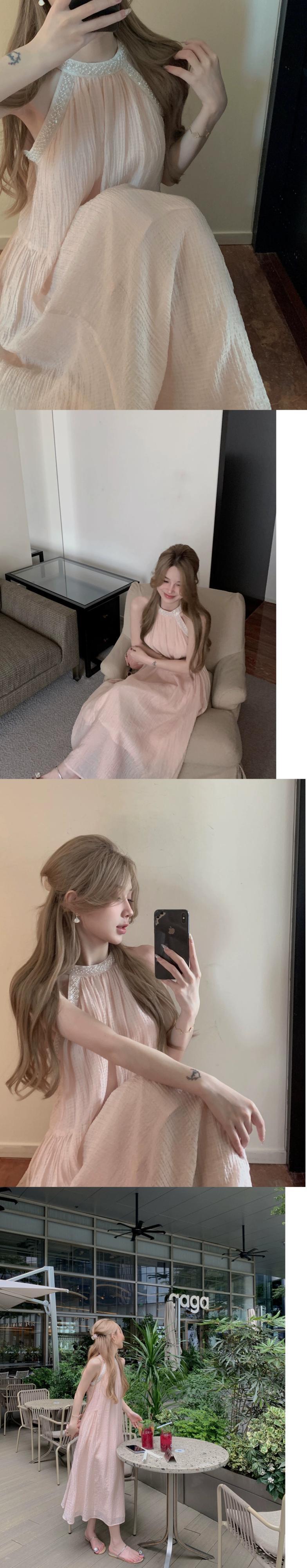 甘いノースリーブホルターネックドレス女性のデザインセンスサスペンダースリムシーサイドホリデードレス女性の夏のプリンセススカート 大人ガーリー スウィート キュート カジュアル サマー 夏物 nana34220736285 | modepoisson