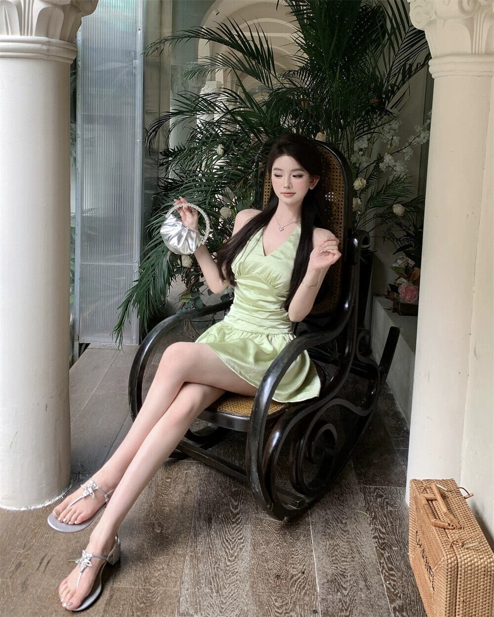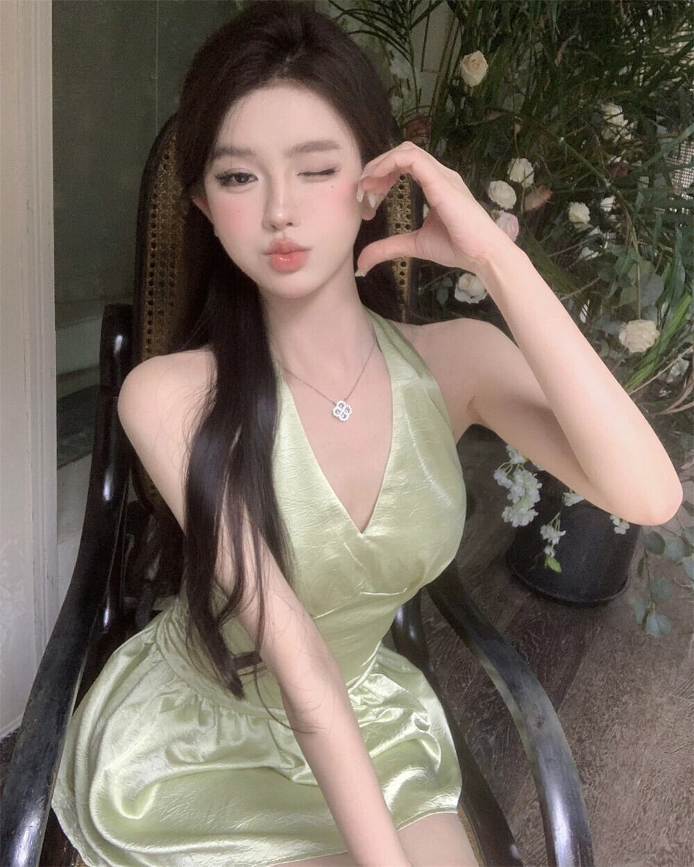 色:緑のドレス,アプリコットドレス