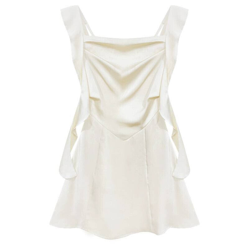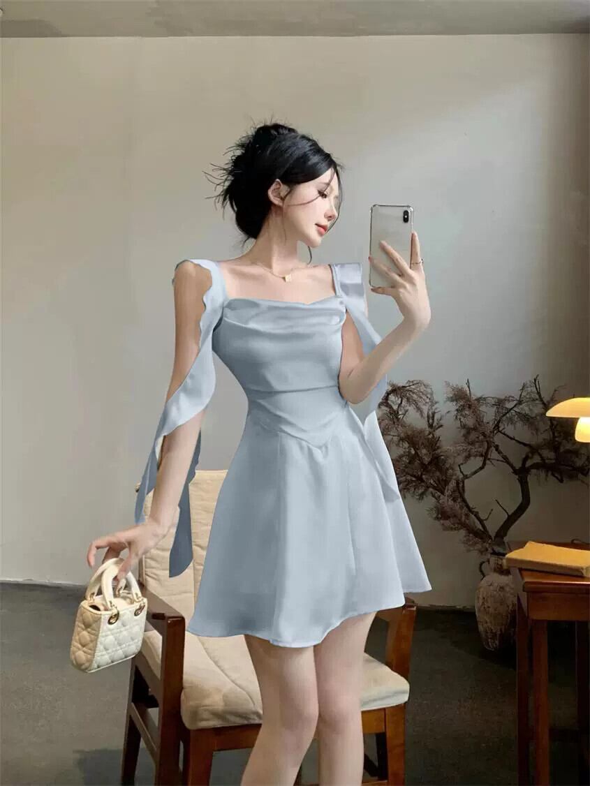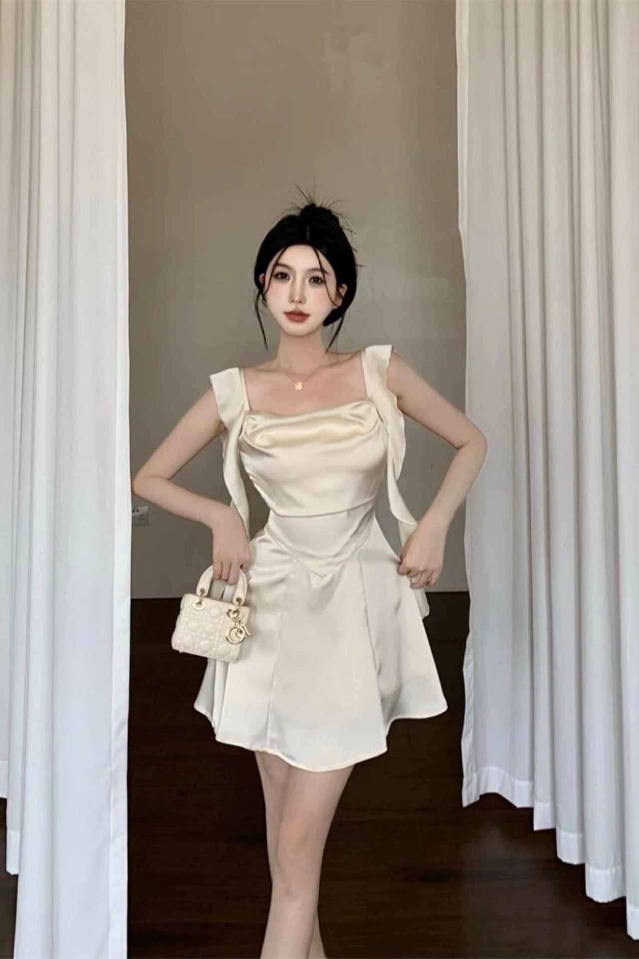 何千ものゴールドのドレスデザインのセンスと自己修養の感覚とスリムニッチノースリーブスクエアカラーサスペンダーサテンショートスカートレディース夏 サマー 夏物 スクウェア nana56864244928 | modepoisson