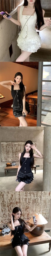 色:白いベスト,ホワイトケーキスカート,黒のベスト,ブラックケーキスカート