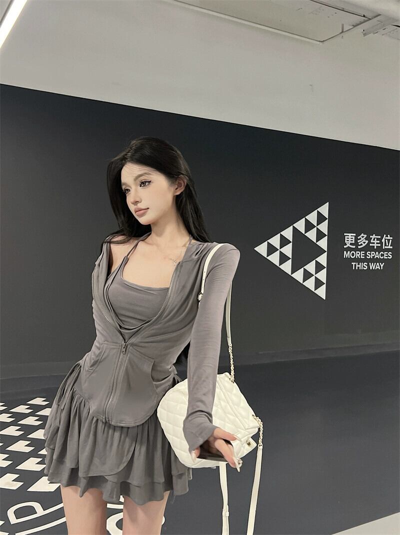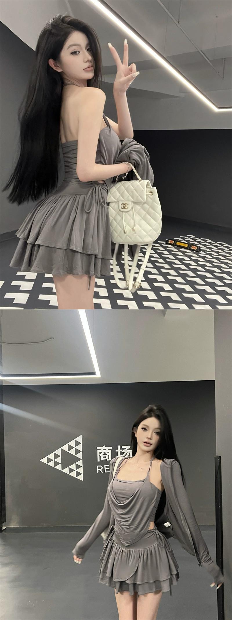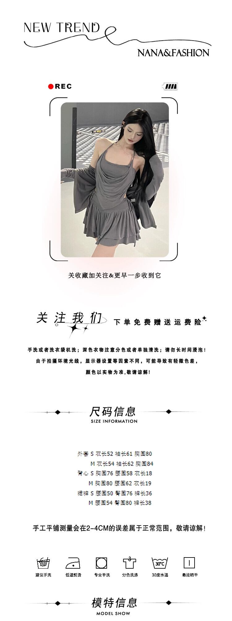 ネットセレブ 2023 揚げストリートスーツ痩身サスペンダー日焼け止めカーディガンハーフレングスショートスカート夏のファッションスリーピース女性 サマー 夏物 nana9623826826 | modepoisson