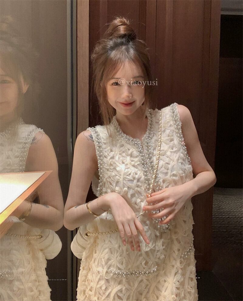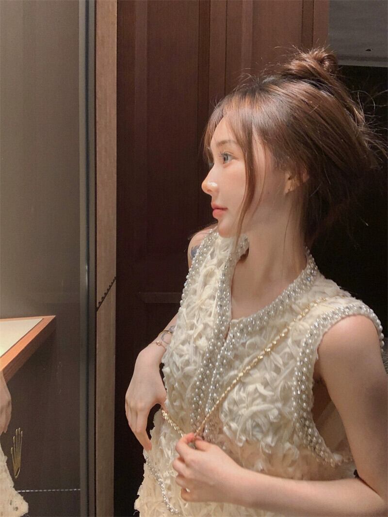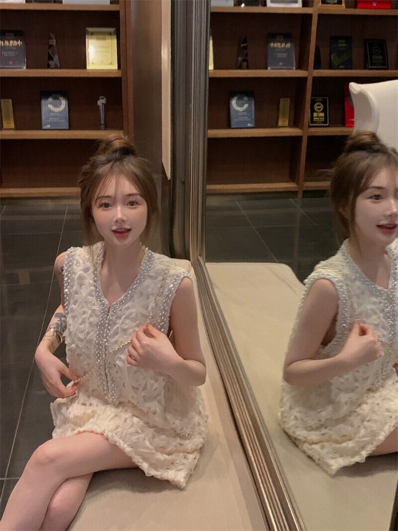 フランスの気質スーパーフェアリードレス小さな香りスタイルセレブショートノースリーブスカート女性の夏の 2023 新しいベストスカート 半袖 ハーフスリーブ サマー 夏物 nana55795160773 | modepoisson