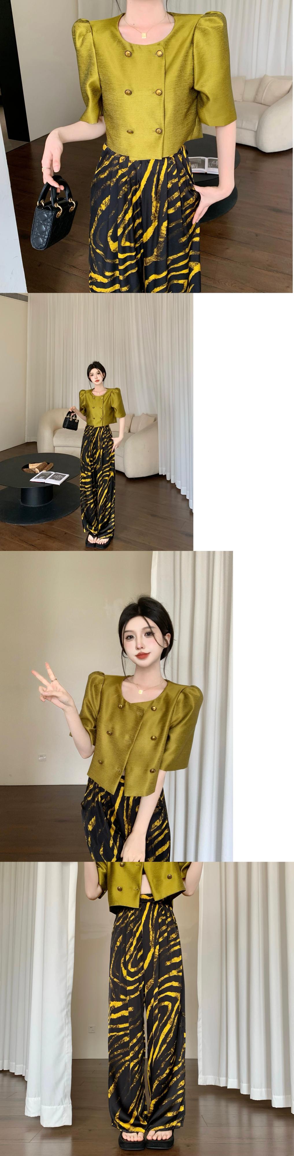 今年の人気の美しいスーツパンツレディースパフスリーブショートトップアイスシルクカジュアルワイドレッグパンツレディースサマーツーピーススーツ 夏物 nana69018954409 | modepoisson