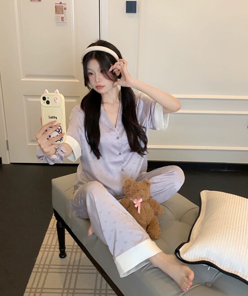 アイスシルクパジャマセット婦人服 2023 夏の新薄部半袖プルオーバーパジャマパンツスイートホームサービス 2 点セット 大人ガーリー スウィート キュート カジュアル サマー 夏物 nana95393954010 | modepoisson