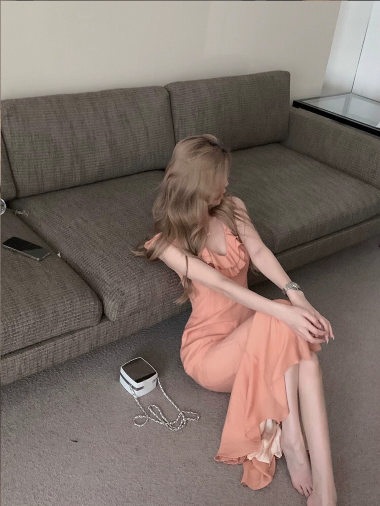 フレンチノースリーブサスペンダードレス女性の夏の純粋な欲望スタイル蓮の葉のスカートスリムフィット美しいマーメイドドレス サマー 夏物 ピュア nana67682965839 | modepoisson