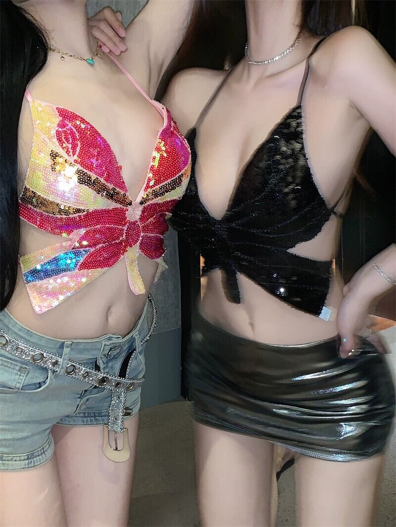 アメリカの蝶スパンコールニッチレトロベストセクシーなスパイスガールズタイトストラップショート小さなトップスアウターウェア女性の夏 サマー 夏物 nana83400109669 | modepoisson
