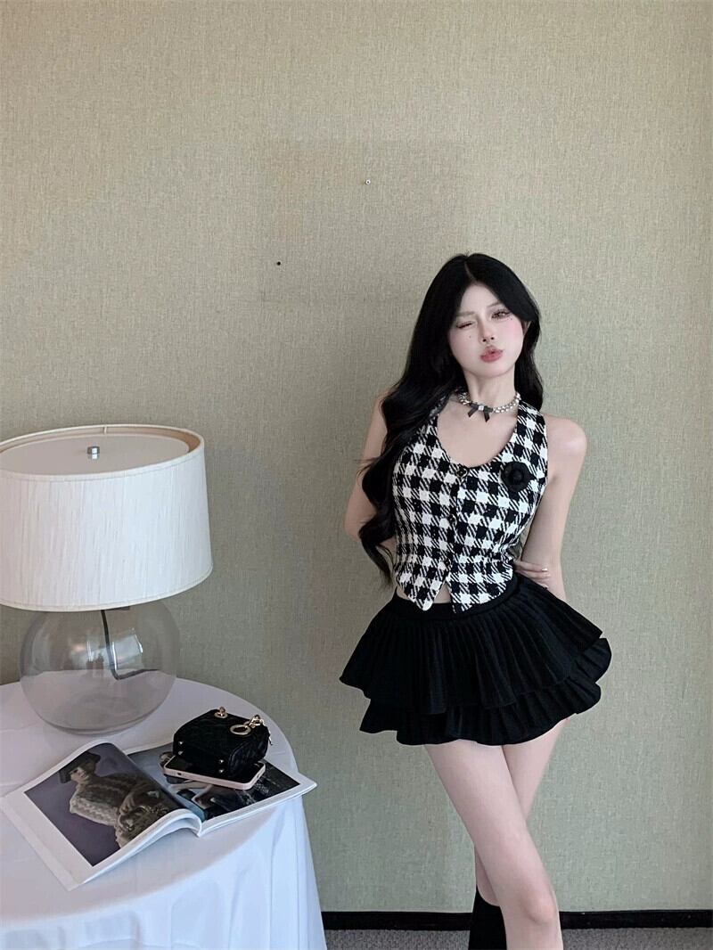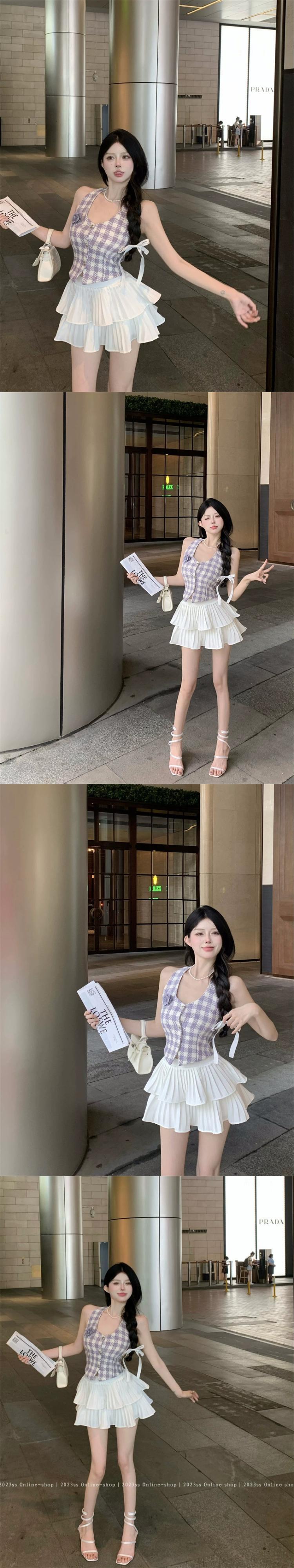 ユニークなスーツスカート小さな香りの風ホルターネックショートトッププリーツハーフレングスショートパンツスカートツーピース女性の夏 サマー 夏物 ショーツ ブルマー nana96623566241 | modepoisson