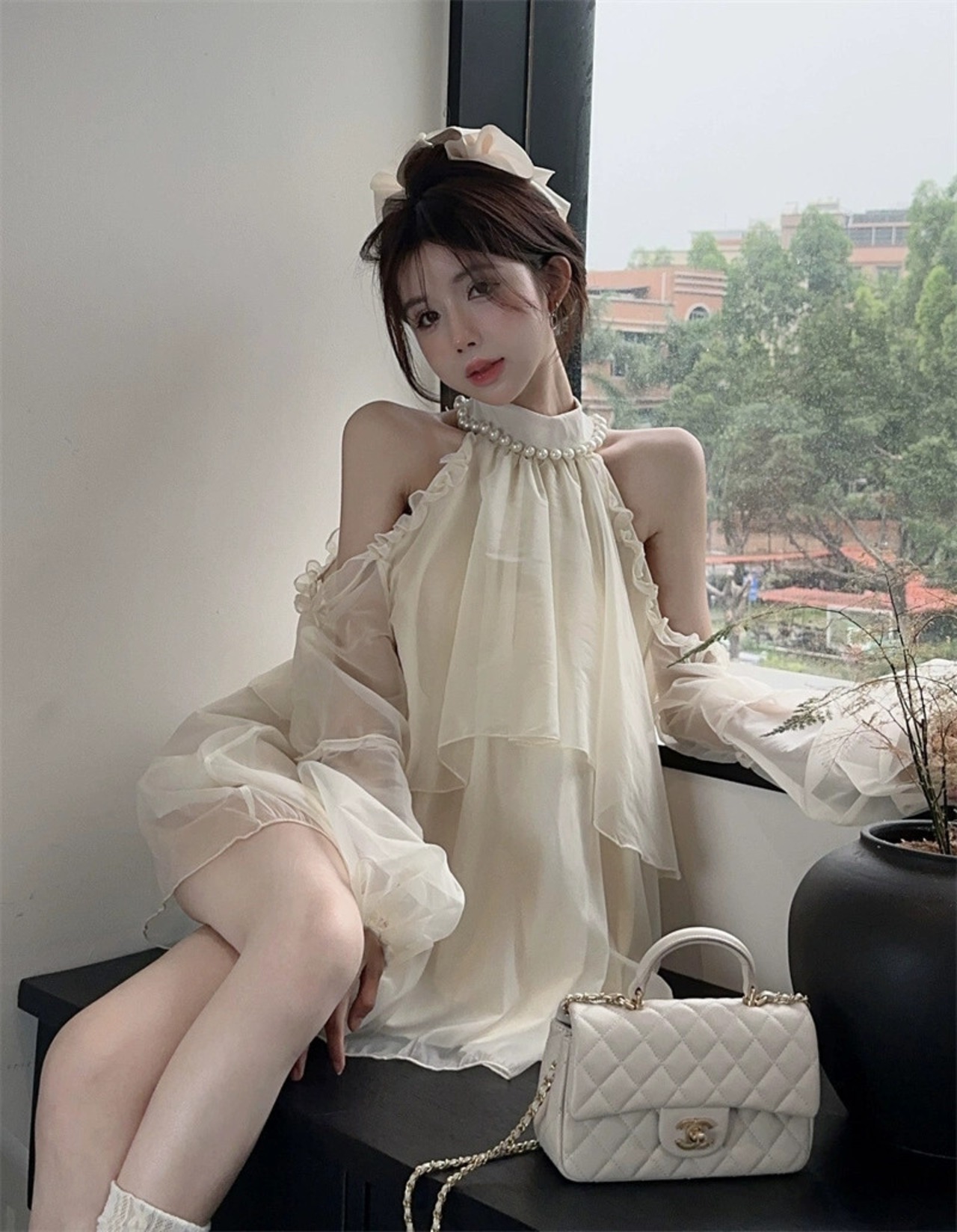 フランスの気質の長袖ドレスの女性の夏のハンギングネックの美しいショートスカートは今年人気で、シックでユニークなスカートです。 ロング サマー 夏物 nana27015691355 | modepoisson