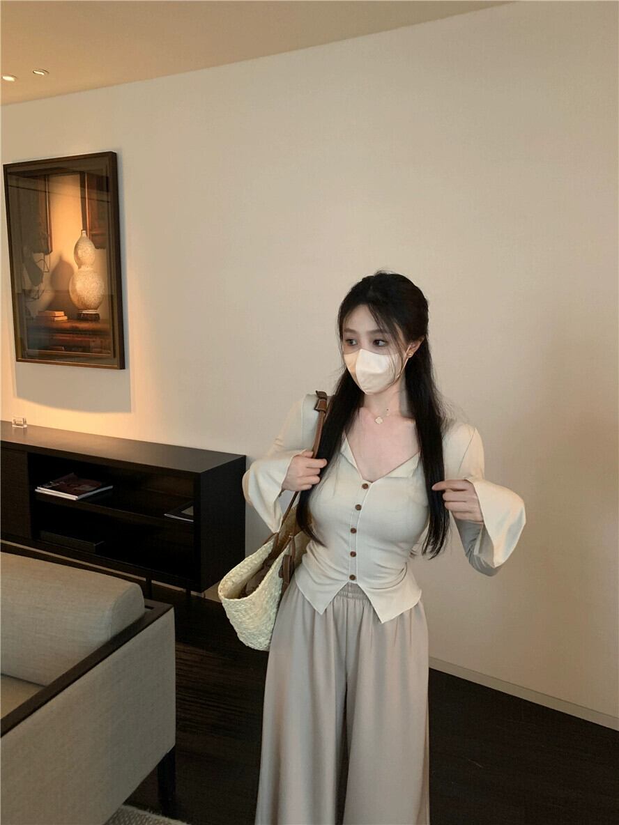 純粋で甘いスーツ長袖日焼け止めニットトップルーズワイドレッグパンツファッション気質ツーピース女性夏 ロング 大人ガーリー スウィート キュート カジュアル サマー 夏物 nana87882578748 | modepoisson