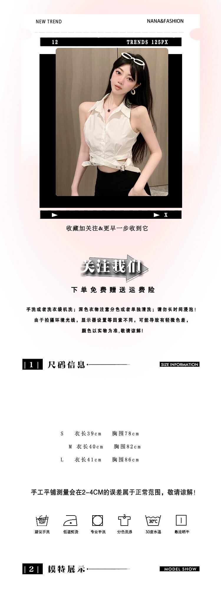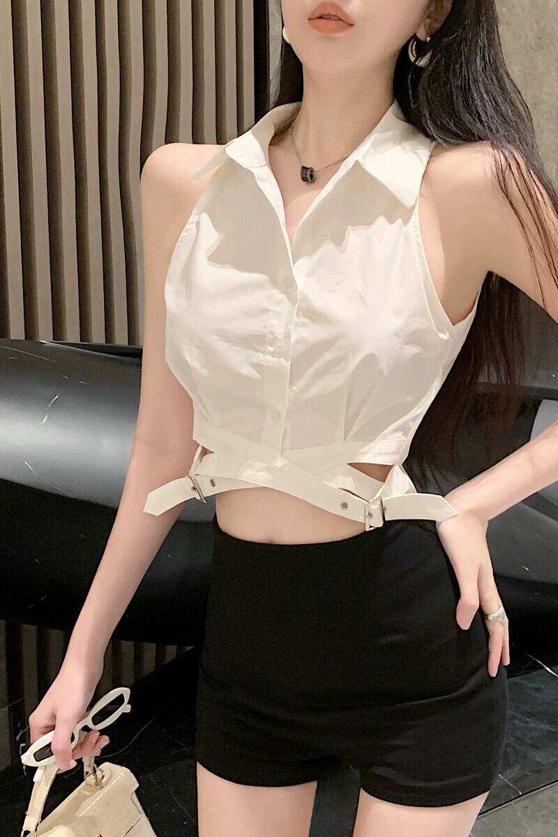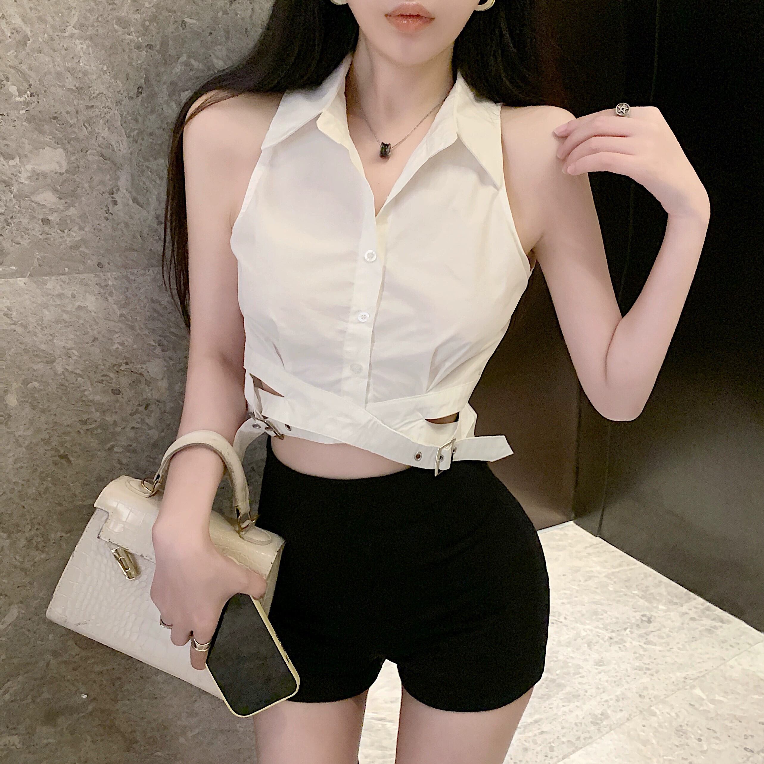 セクシーなホルターネックシックなスパイスガールシャツノースリーブベスト夏甘くてスパイシーなショートニッチスリムトップ 大人ガーリー スウィート キュート カジュアル サマー 夏物 nana23198001649 | modepoisson