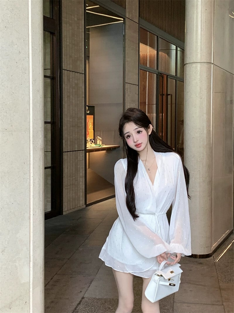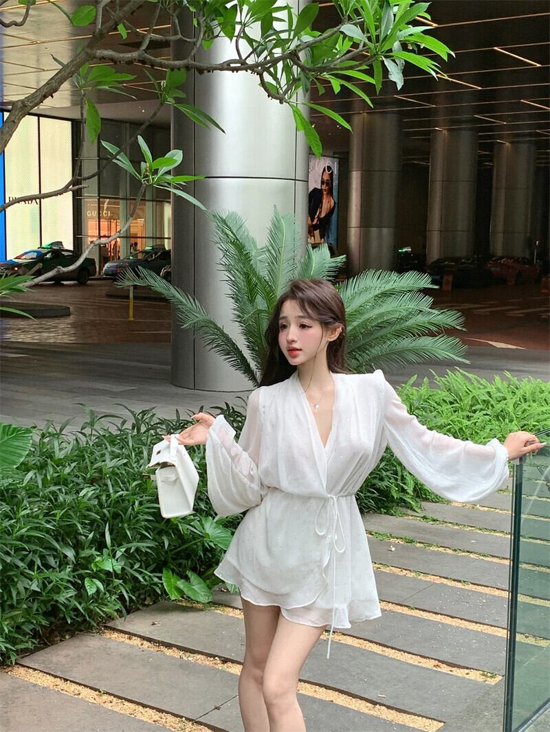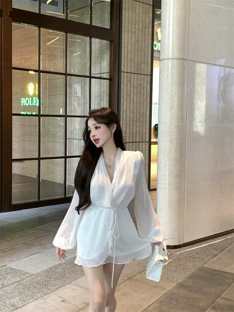 美乳フフドレスフレンチスイート長袖ハイエンドセンスニッチ気質ショートスカート女性の夏の新しいスタイル ロング 大人ガーリー スウィート キュート カジュアル サマー 夏物 nana48498522069 | modepoisson
