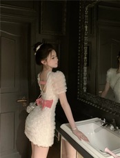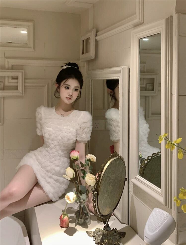 ユニークな白いドレスの気質フレンチスイートスリム薄型パッケージヒップスカート女性の夏のショートスカート ホワイト 大人ガーリー スウィート キュート カジュアル サマー 夏物 nana2006629703 | modepoisson