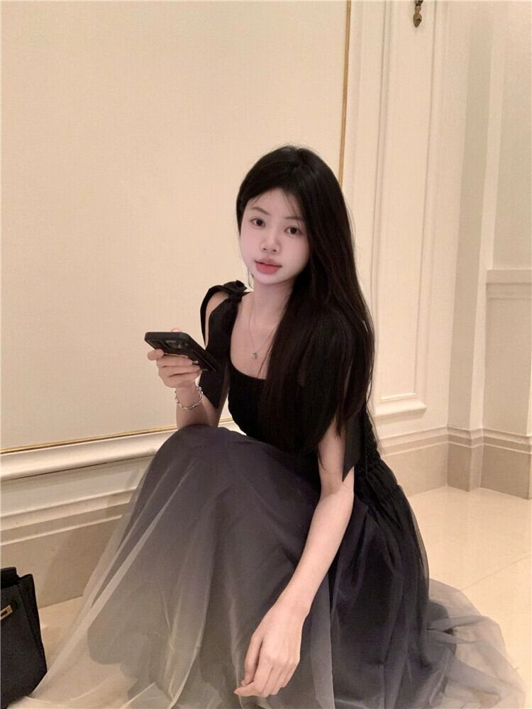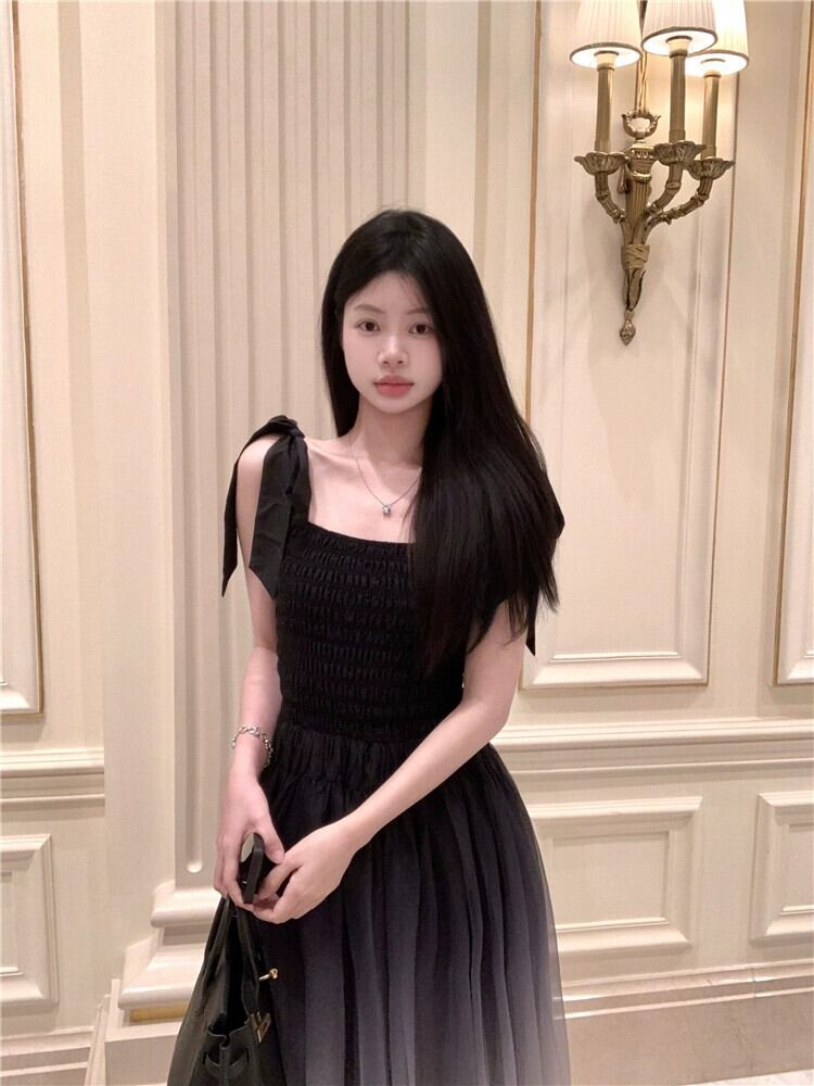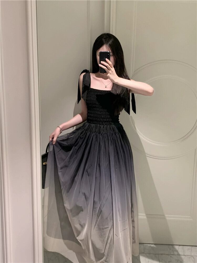 ノースリーブウエスト痩身スクエアネックサスペンダードレス女性の夏のユニークなデザインスカートハイエンドニッチロングスカート サマー 夏物 スクウェア nana42691964047 | modepoisson