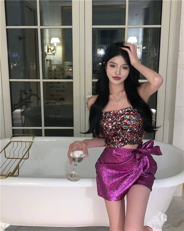 スイートスーツ レディース フレンチ セクシー 痩身 チューブトップ ベスト トップ ハーフパンツ スカート 夏 2点セット 大人ガーリー スウィート キュート カジュアル サマー 夏物 nana68101521880 | modepoisson