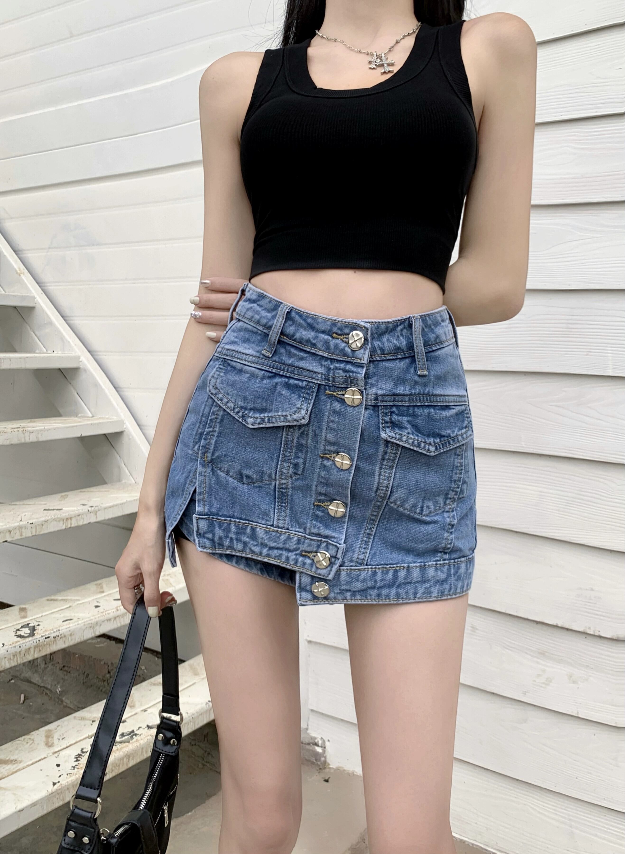 作業服デニムスカート 2023 夏の新ハイウエストスリムショートスカートヒップカバー A ラインパンツスカート女性 ハイウェスト サマー 夏物 Aライン nana9568853294 | modepoisson