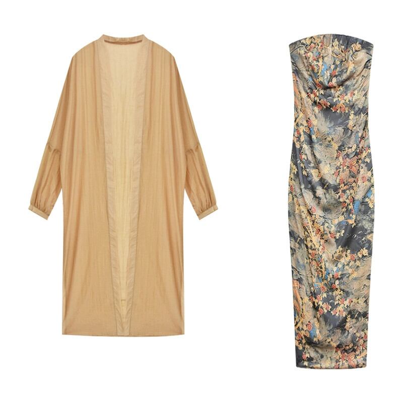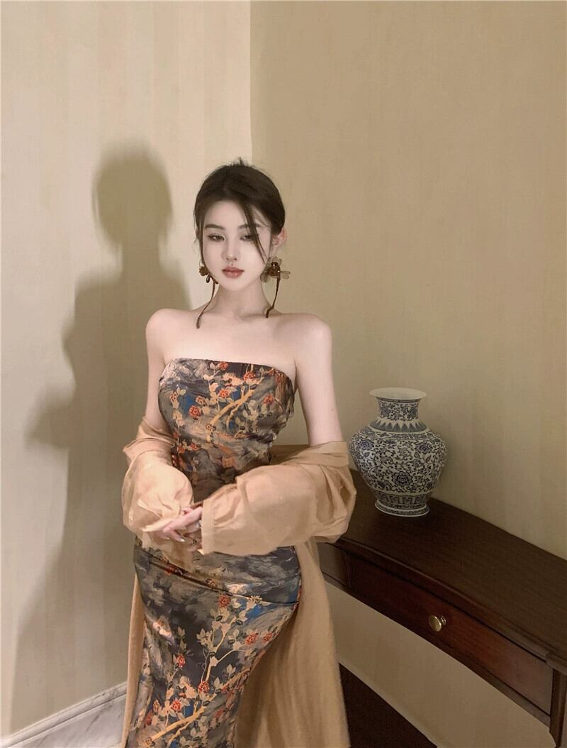 スーツスカート女性の夏のファッション新しい中国風改良チャイナドレス国民風レトロチューブトップドレス長袖日焼け防止カーディガン ロング サマー 夏物 nana20722900274 | modepoisson