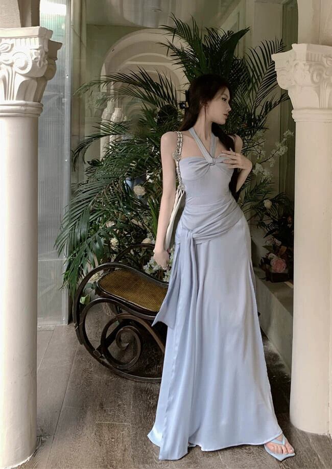 ホルターネックドレス女性のビーチ休暇サスペンダースカートハイエンド純粋な欲望セクシーなスリムスカート気質ロングスカート夏 サマー 夏物 ピュア nana13165615719 | modepoisson