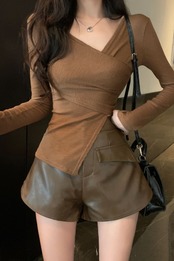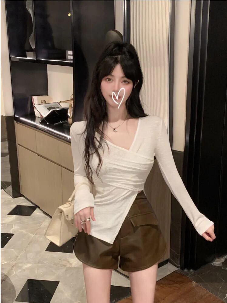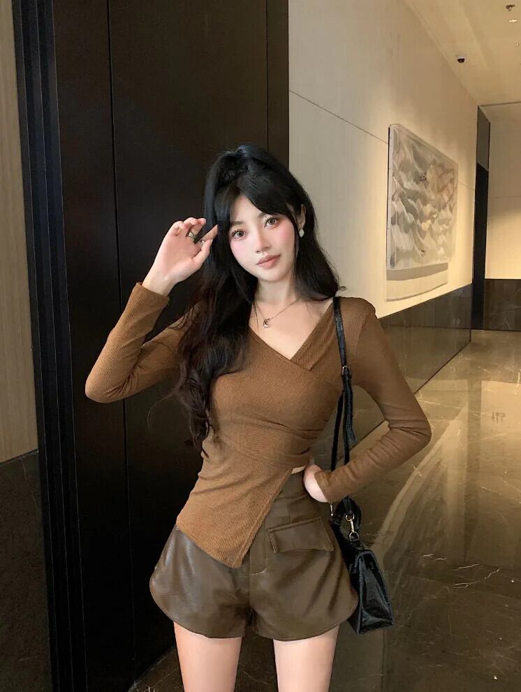 変則デザイン長袖トップスストレートワイドレッグショーツ2023新しいファッションスーツレディース初秋2点セット ロング オータム 秋物 ブルマー nana82045527390 | modepoisson