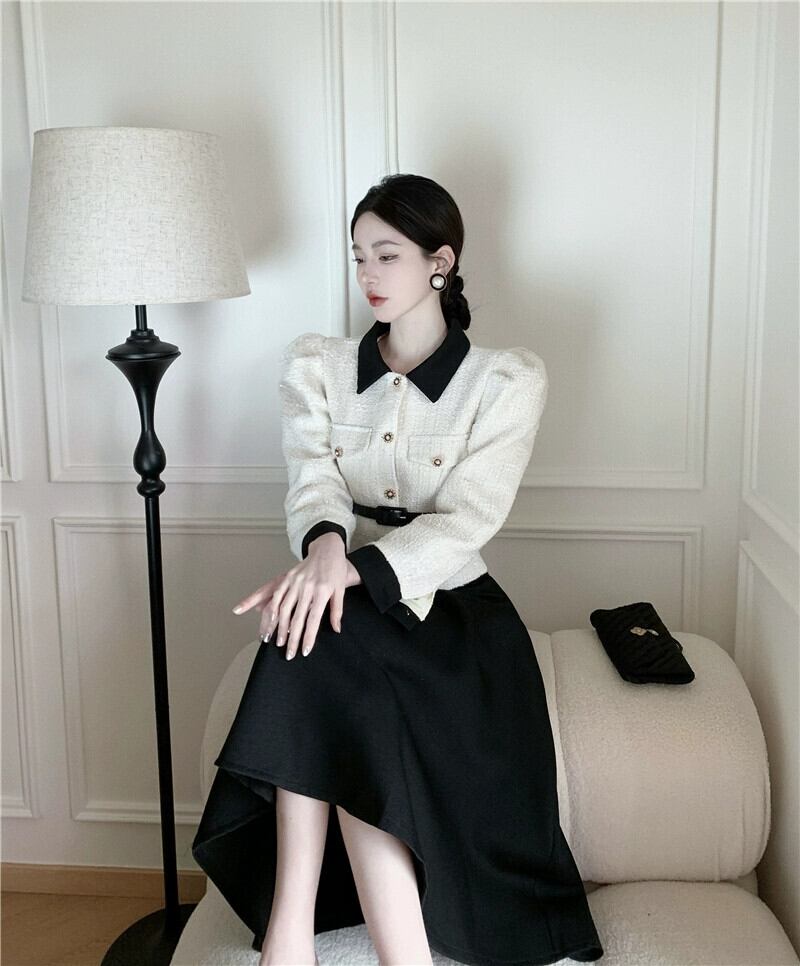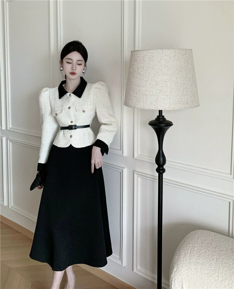 色:白衣とベルト付き黒スカート白衣とベルト付き黒スカート