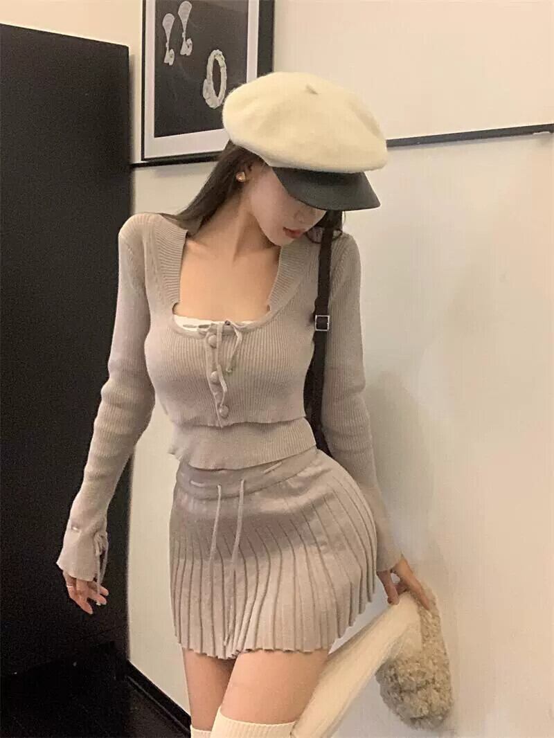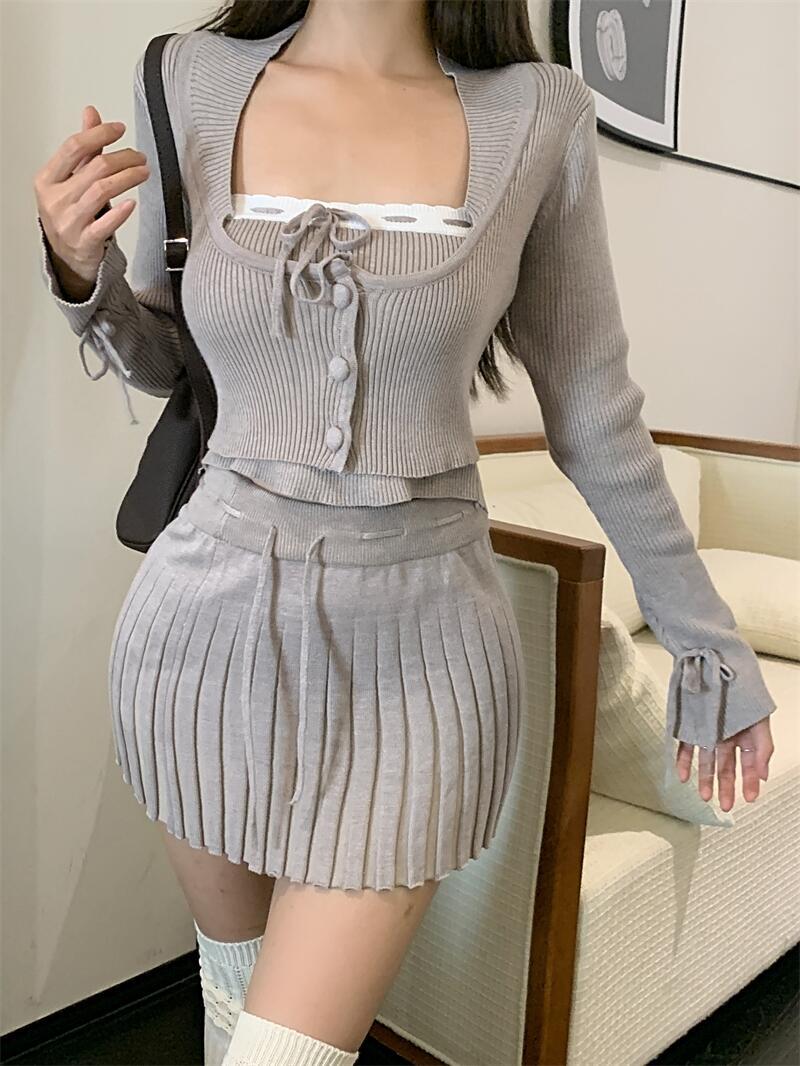 ナナ~ キャミソール トップス 長袖 カーディガン スカート 高級バレエ風 重ね着 3点セット レディース 秋 ロング レッド オータム 秋物 nana83936951252 | modepoisson